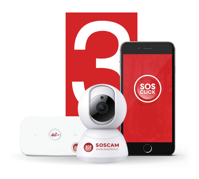 Plan orientado a personas que necesiten todas las funcionalidades de SOSCLICK con monitoreo de una cámara, que incluye parlantes adicionales, más un modem 4g para lugares que no cuenten con internet.